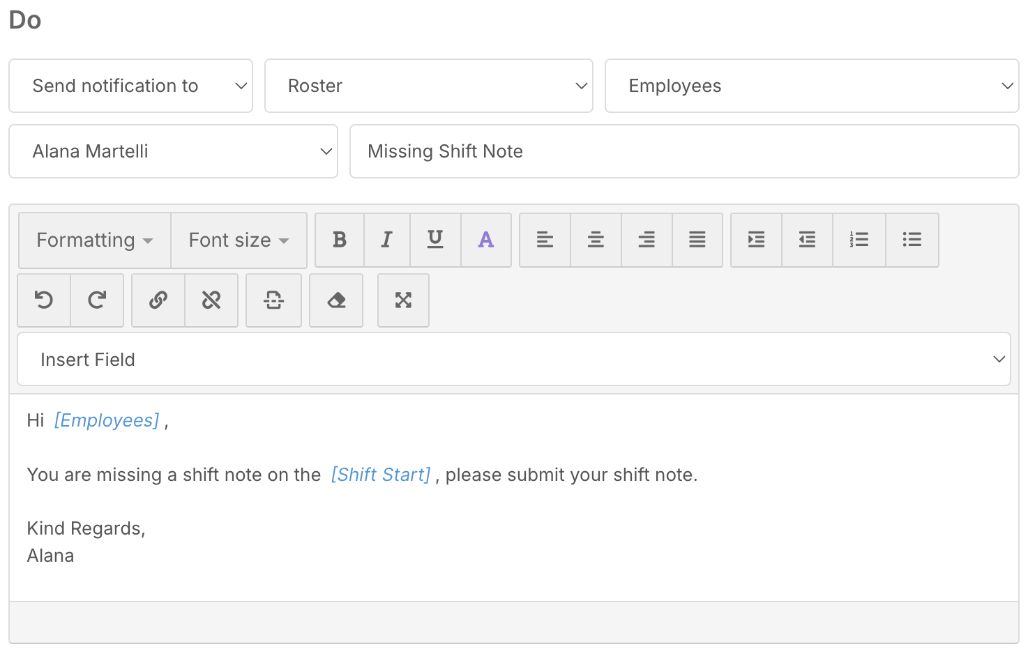 Roster Automations can be used to identify and notify staff when shift notes are missing.