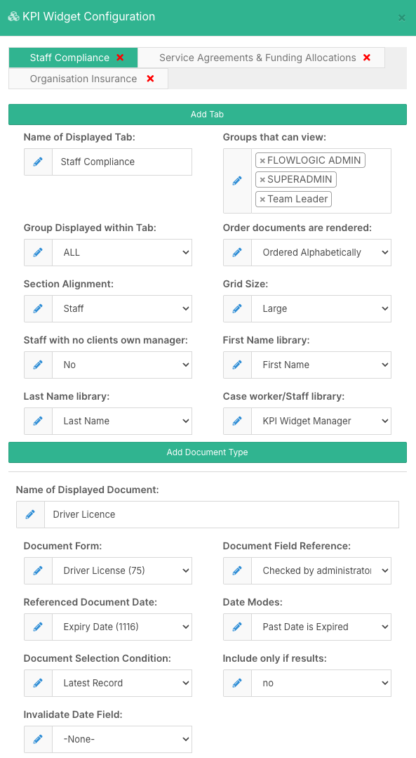 Once the tab is configured, you can add document requirements.