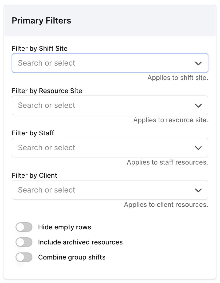 Bulk actions only apply to visible shifts, meaning active filters will limit selection.