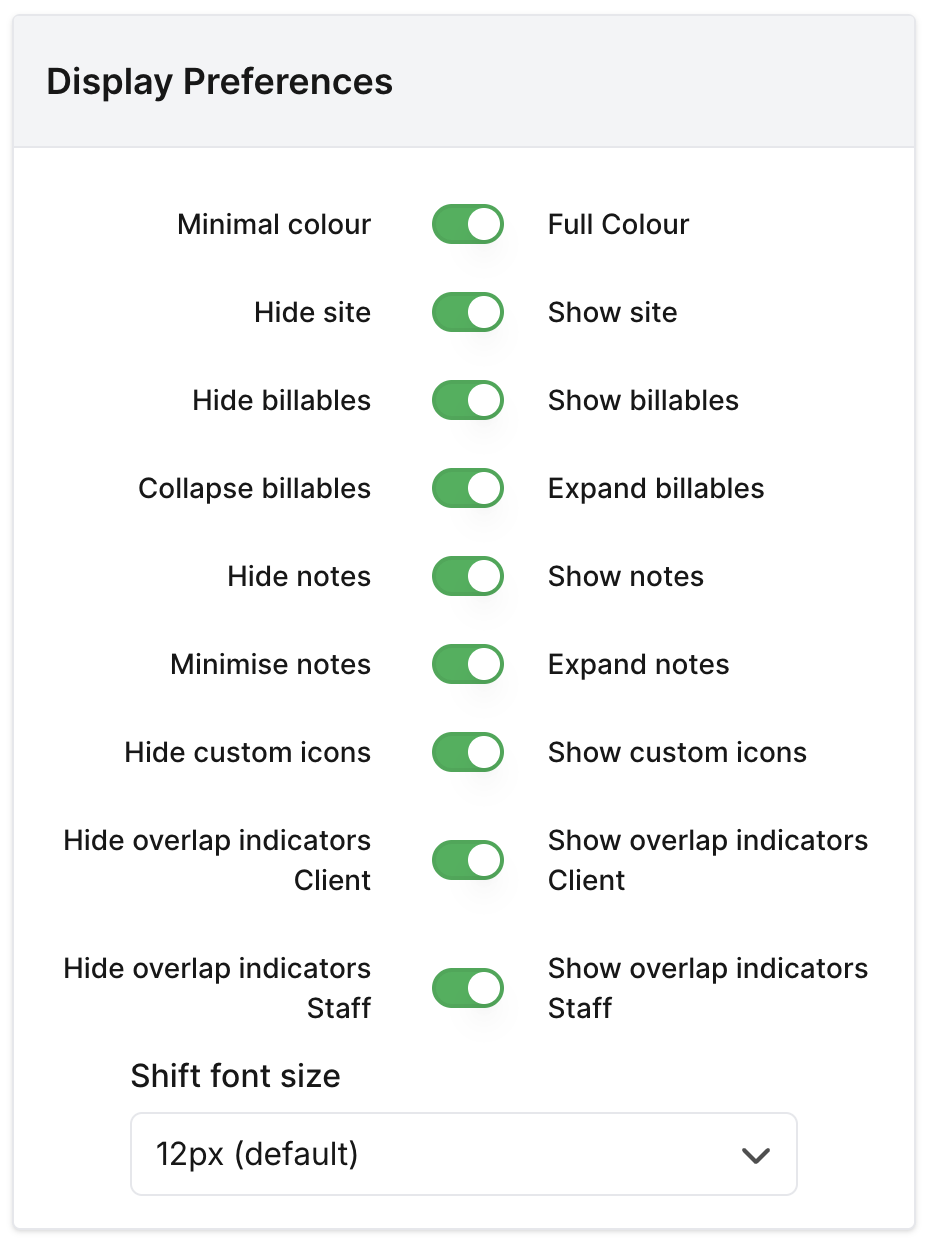 Display preferences allow you to customise the roster appearance.